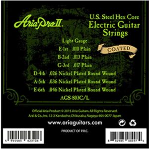 Aria Pro II AGS-803C/L エレキギター弦 ライトゲージ コーティング 3個パック