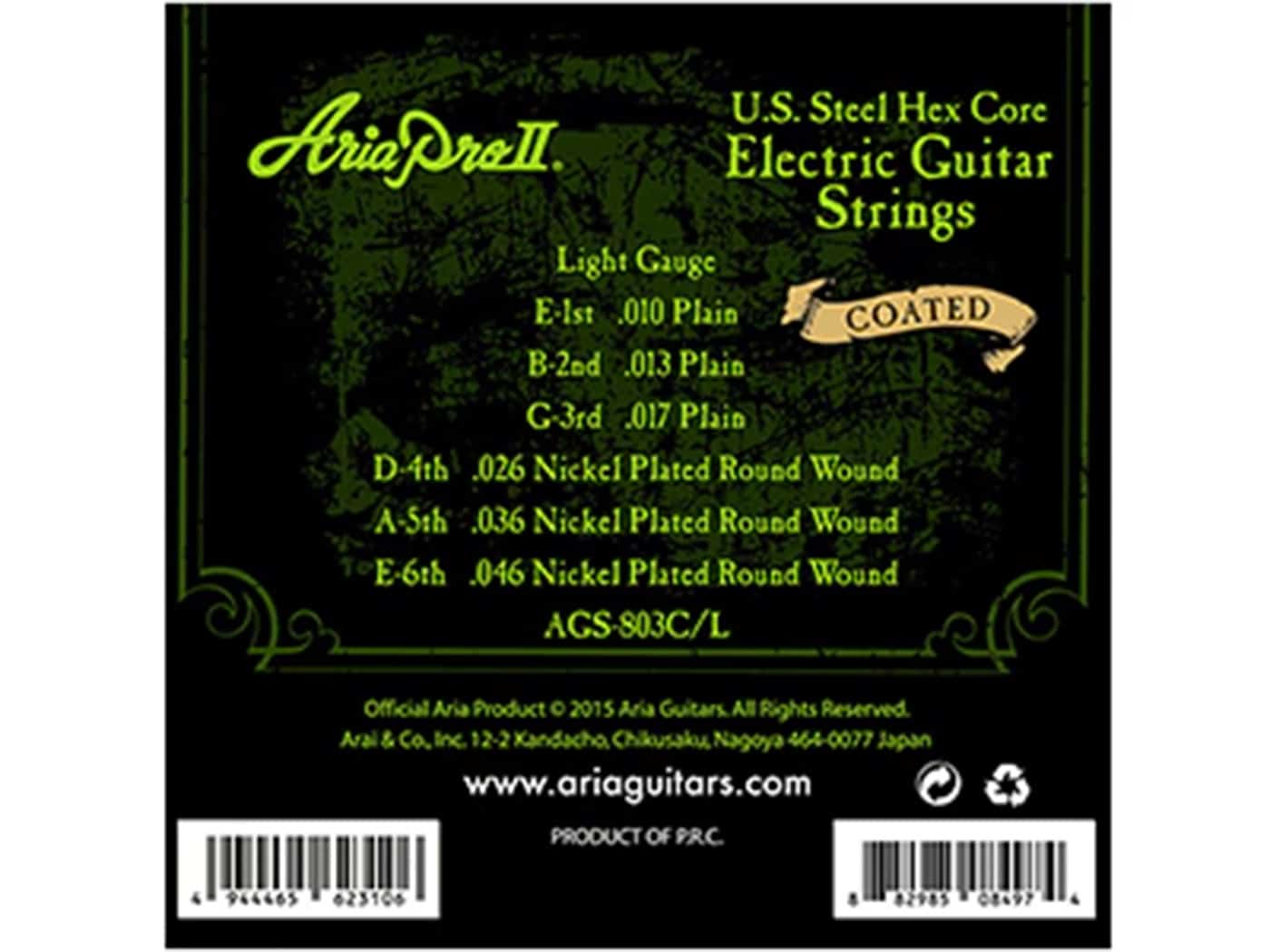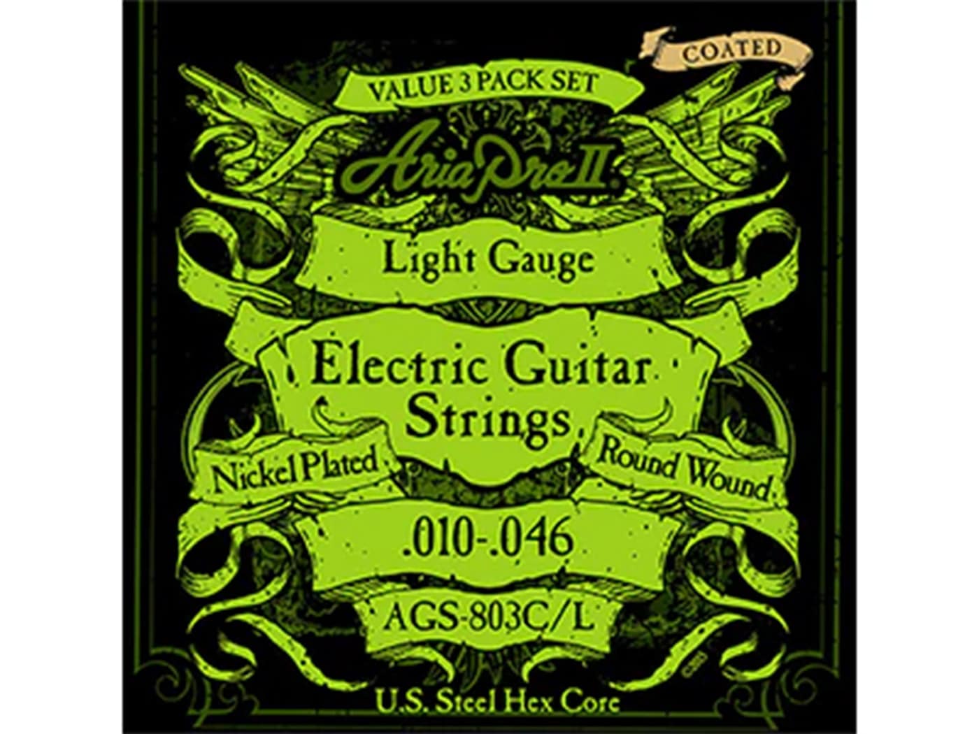Aria Pro II AGS-803C/L エレキギター弦 ライトゲージ コーティング 3個パック