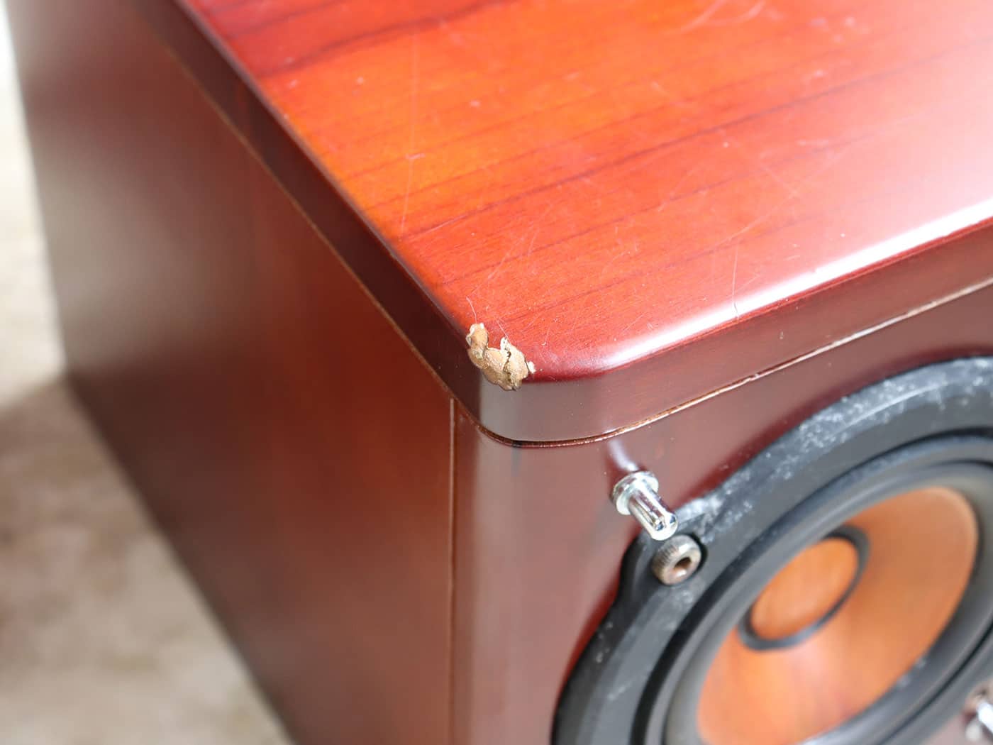 写真ように天板部やエッジ部の傷、ネットが片方欠品、ネットの穴など使用感はございますが、音声動作は良好で問題なくお使いいただけます。