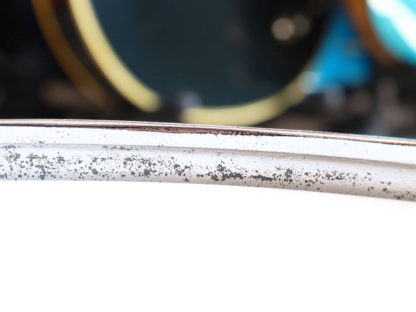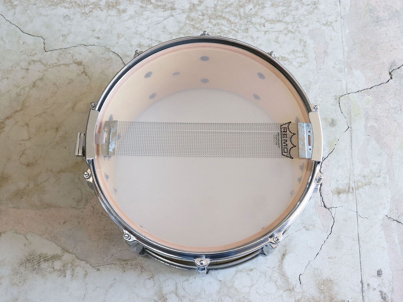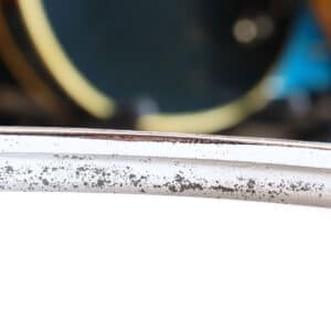写真のようにリムなど金属部の錆、使用に伴ってできた打痕などございますが、シェルやリムに歪み等はなく、問題なくお使いいただけるコンディション。