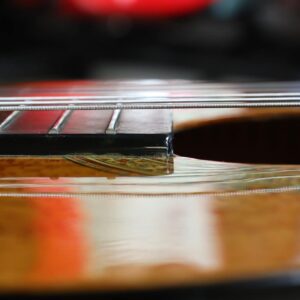 美しいトップ材とサウンドホールの華やかな模様が目を惹く一本!