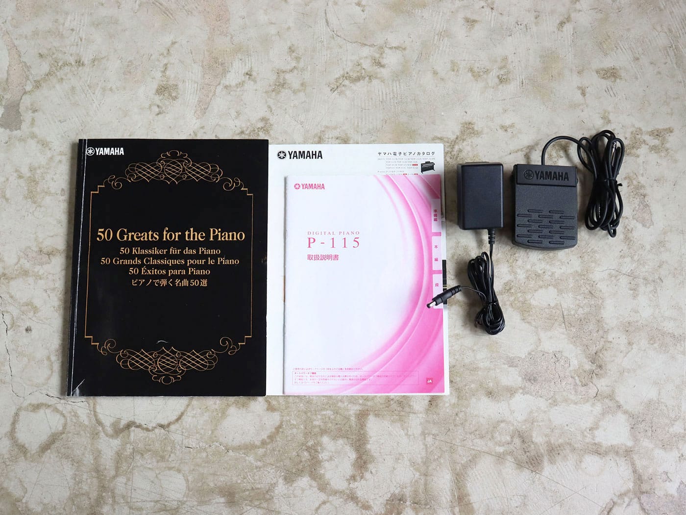 譜面台、楽譜、ACアダプターが付属いたします。