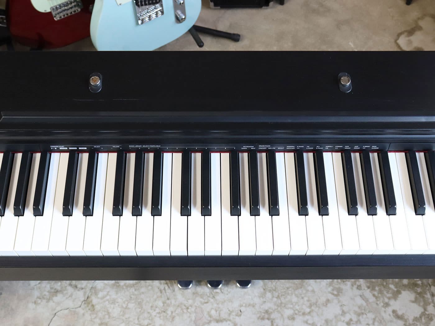 写真のように、鍵盤蓋の傷や細かな傷がありますが音声動作は良好で、問題なくお使いいただけます。
