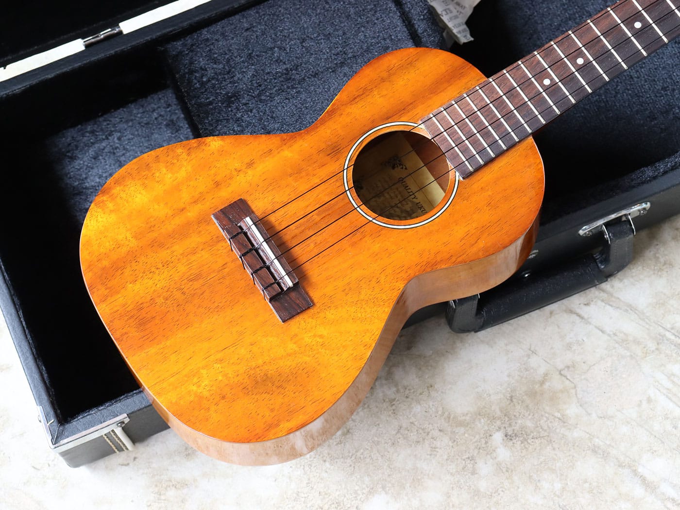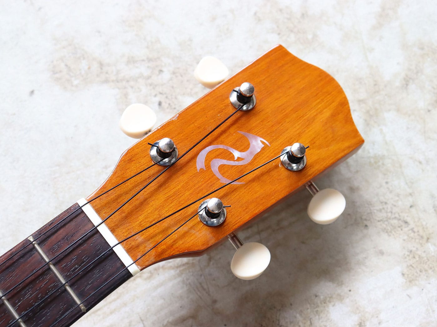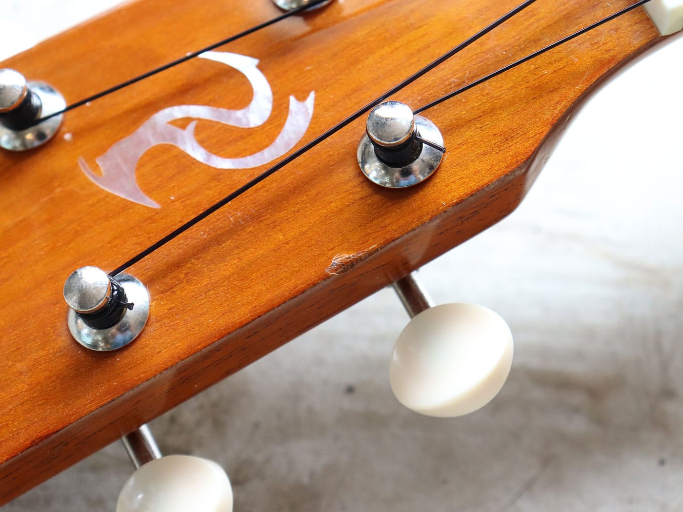 ペグがチューニングのしやすいギアペグに交換されているのも嬉しいポイントですね。(元のペグも付属いたします。)