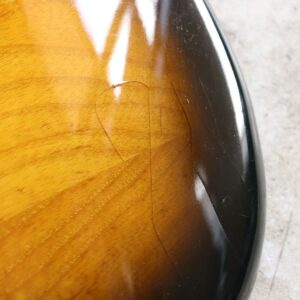 2トーンサンバーストに、フレイムメイプルのラミネートが施された激渋ルックス。