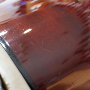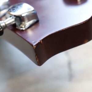 写真のようにヘッドに塗装剥げを伴う傷、ボディエンド付近に小さな傷がありますが、演奏上の問題はなくプレイコンディションも良好。
